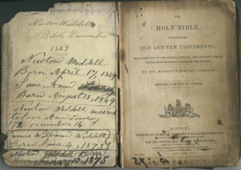 The following images, which show pages from the bible of Newton5, record important family events in his life, and demonstrate how invaluable such sources can be to genealogical research. I am grateful to Maxine Smallwood-Weddell and her family for permission to reproduce them here.